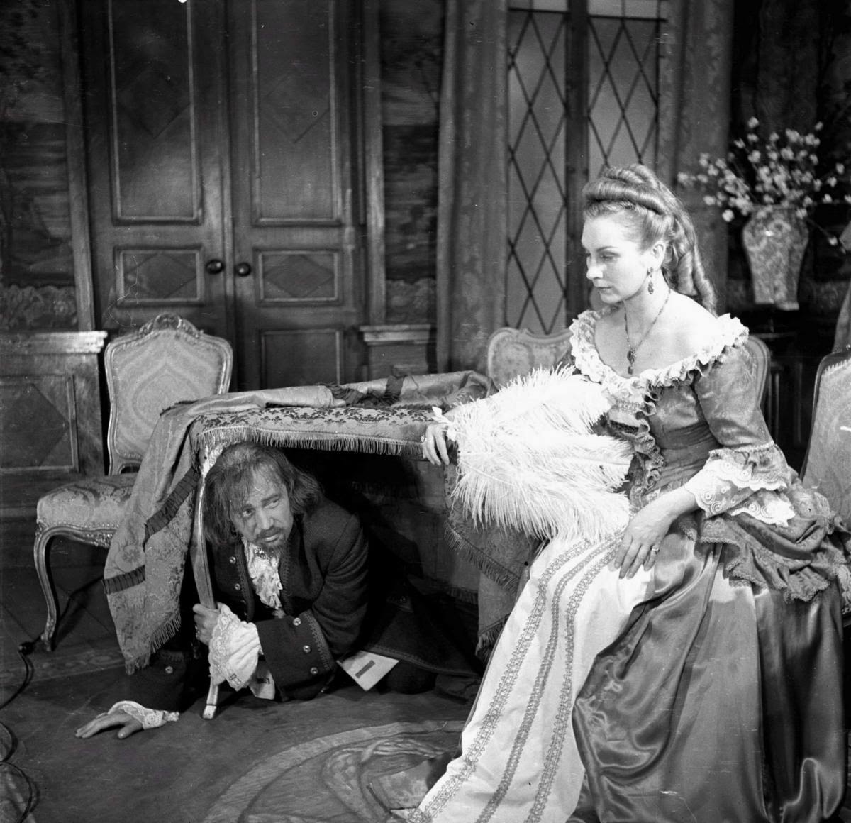 Részlet a Szomszédok c. teleregényből, balról jobbra: Zenthe Ferenc, Komlós Juci, Raksányi Gellért)
