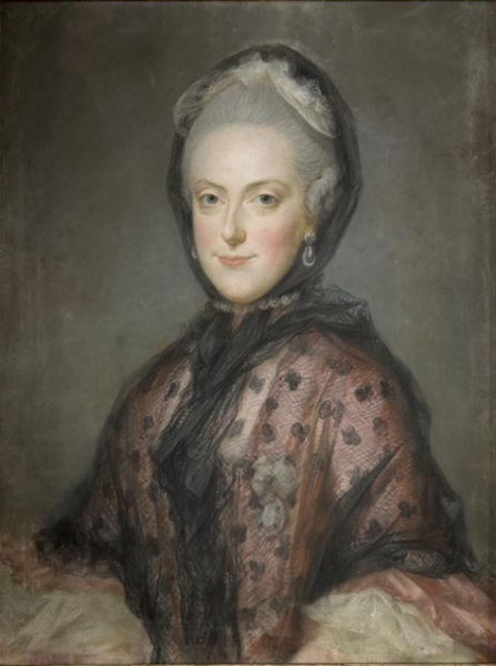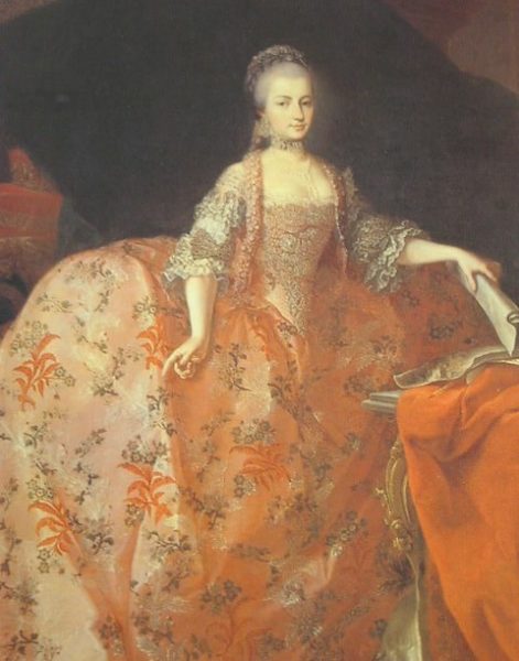 Heinrich Fuger: Mária Terézia gyászruhában 1776-ban/ balról a negyedik álló alak Mária Anna/Wikipedia