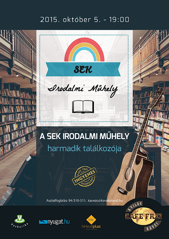 2015. október 5-én a SEK Irodalmi Műhely harmadik találkozója alkalmából a Café Frei Szombathelyben várja az érdeklődőket. Ez alkalommal a kávéház színpadán Földi Veronika és Szinay Balázs duója lép fel megzenésített versekkel. A dalok között egyetemi hallgatók és középiskolai tanulók adják elő saját költeményeiket, ahogy az már a Műhely önálló estjein megszokott.