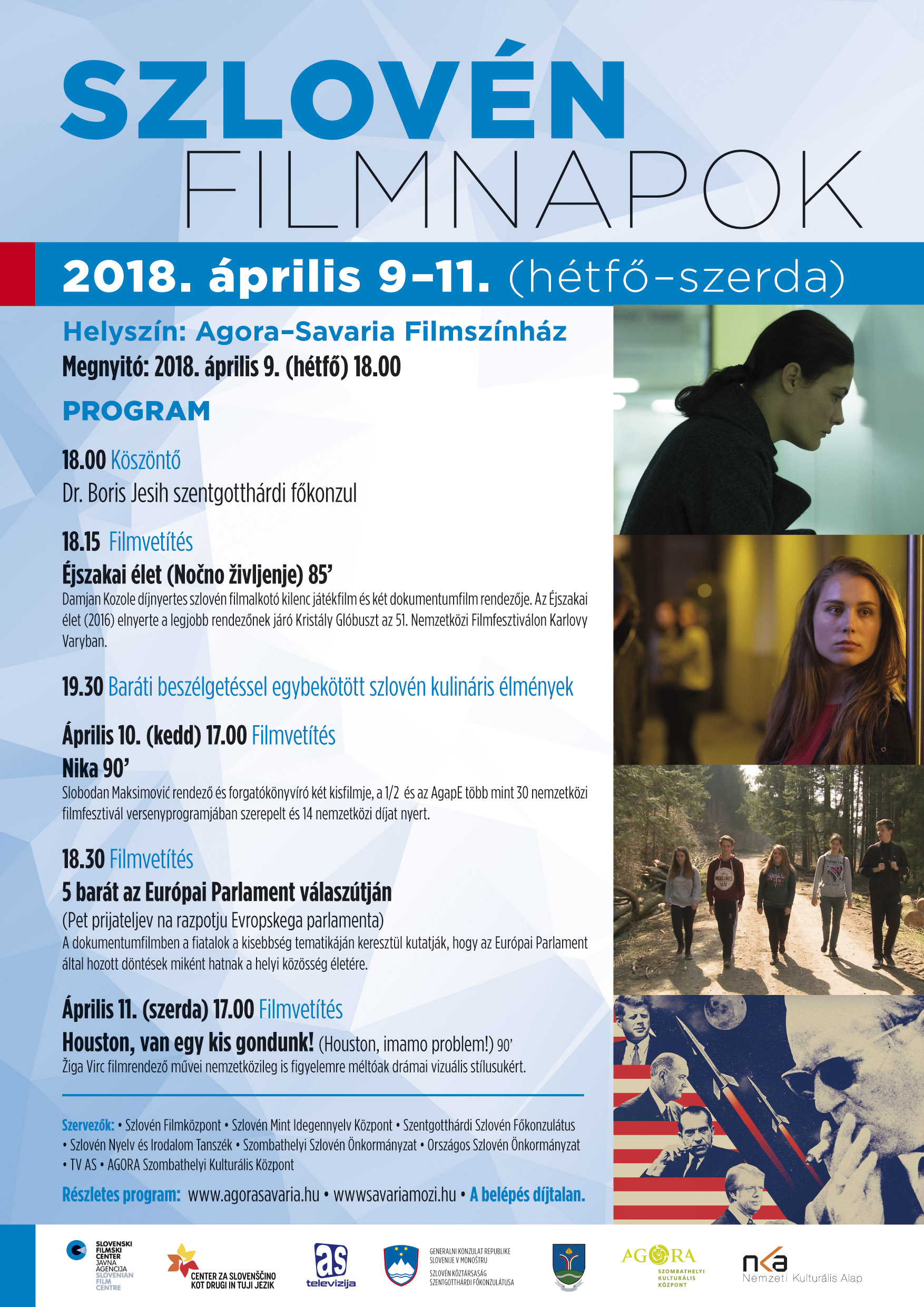 Az Agora – Savaria Filmszínházban szlovén filmnapjait 2018. április 9-én, hétfőn 18 órakor Dr. Boris Jesih szentgotthárdi főkonzul nyitja meg.
