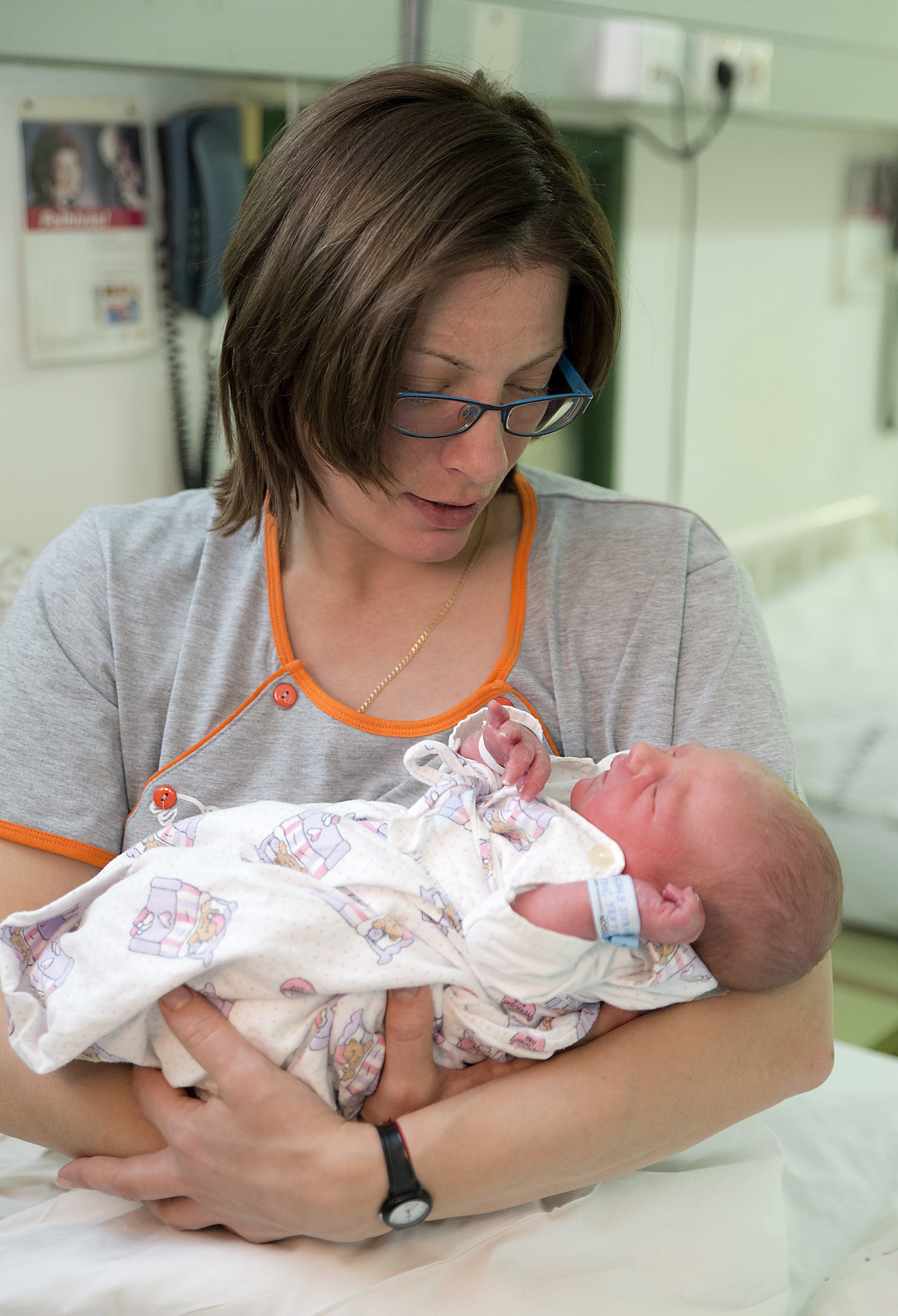 Szombathely, 2018. január 1. – Balázs Imre, az új év első vidéki újszülöttje és édesanyja, Kiss Emese Enikő a szombathelyi Markusovszky Kórház szülészetén 2018. január 1-jén. A 36 éves édesanya első gyermeke 3130 grammal, 50 centiméterrel, természetes úton jött a világra.